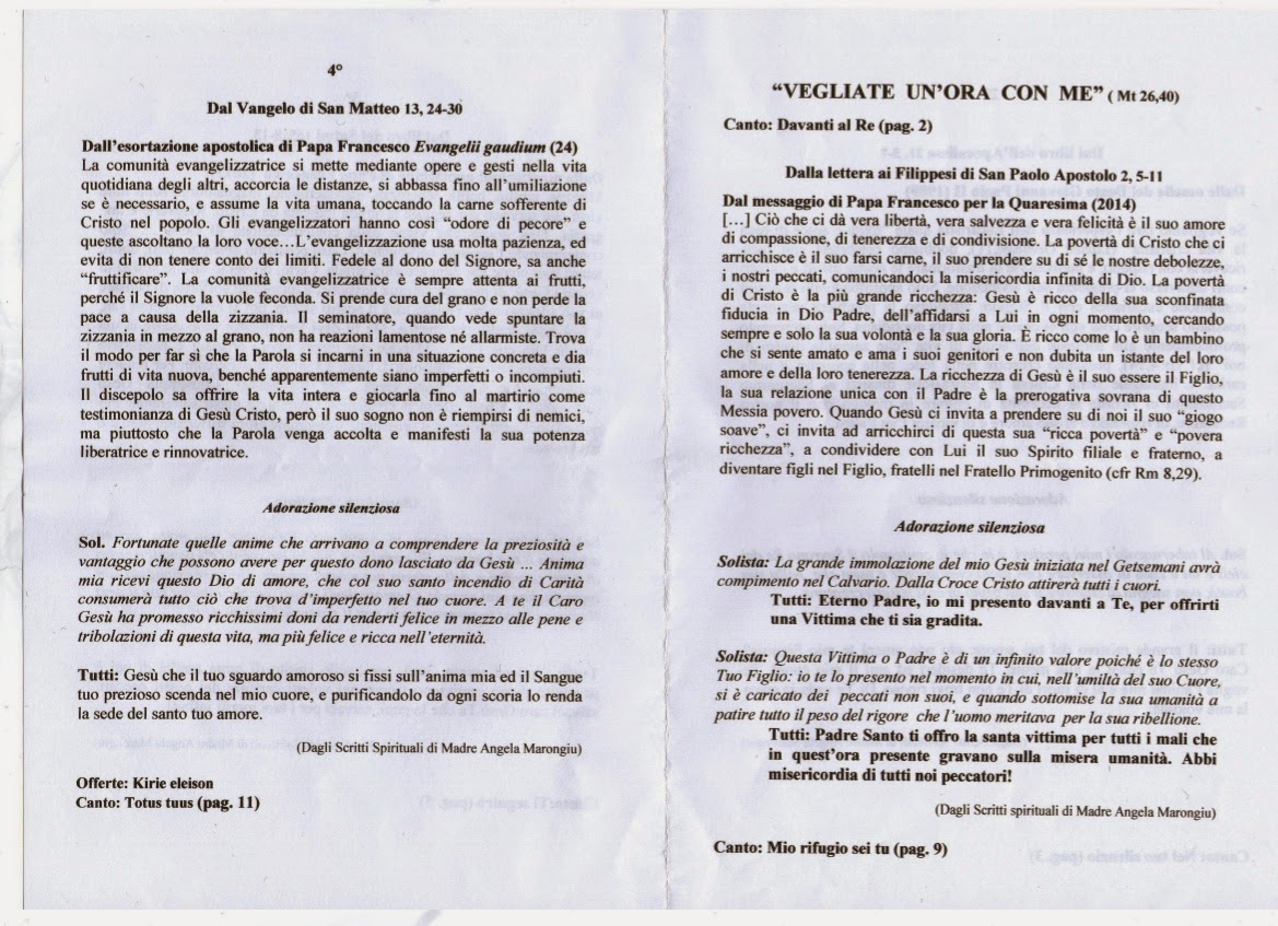 Oggi: Vangelo, Letture, Adorazione, Preghiere del giorno - La voce di Gesù Signore Gesù Cristo, che nel mirabile sacramento dell'Eucaristia. ci hai lasciato il memoriale della tua Pasqua, fa' che adoriamo con viva fede. il santo mistero del tuo Corpo e del tuo Sangue, per sentire sempre in noi i benefici della redenzione. Tu sei Dio, e vivi e regni con Dio Padre. u0001Oppure: