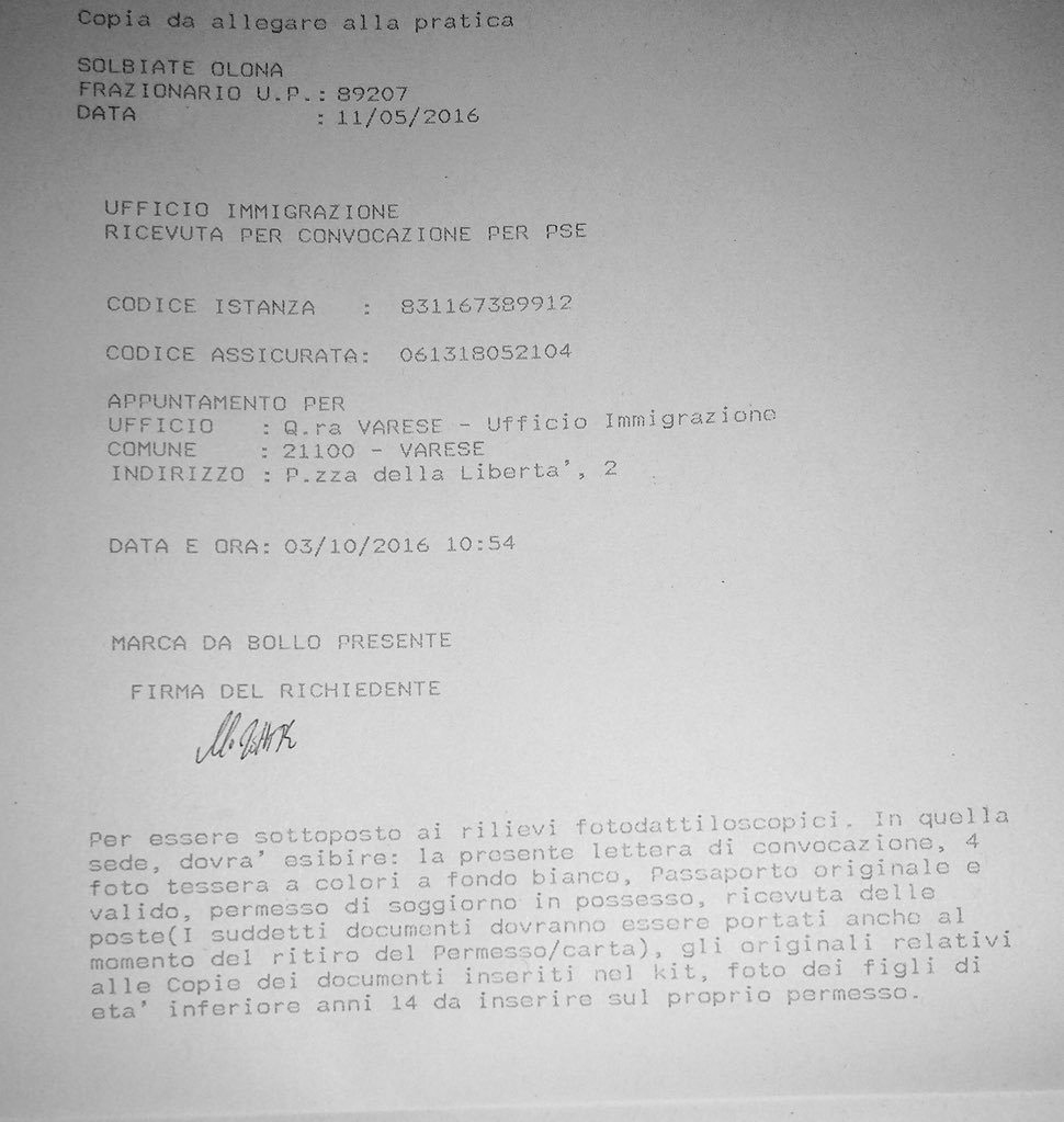 Permesso di soggiorno - Polizia di Stato L' ingresso all'Ufficio Immigrazione di via Montebello per il FOTOSEGNALAMENTO E L'IDENTIFICAZIONE, viene rigidamente regolamentato sulla base dell' orario di appuntamento, riportato sulla lettera di convocazione rilasciata dagli uffici postali. dalle ore 08.00 alle ore 10.00 (convocazioni con orario dalle ore 08.00 alle ore 09.55)