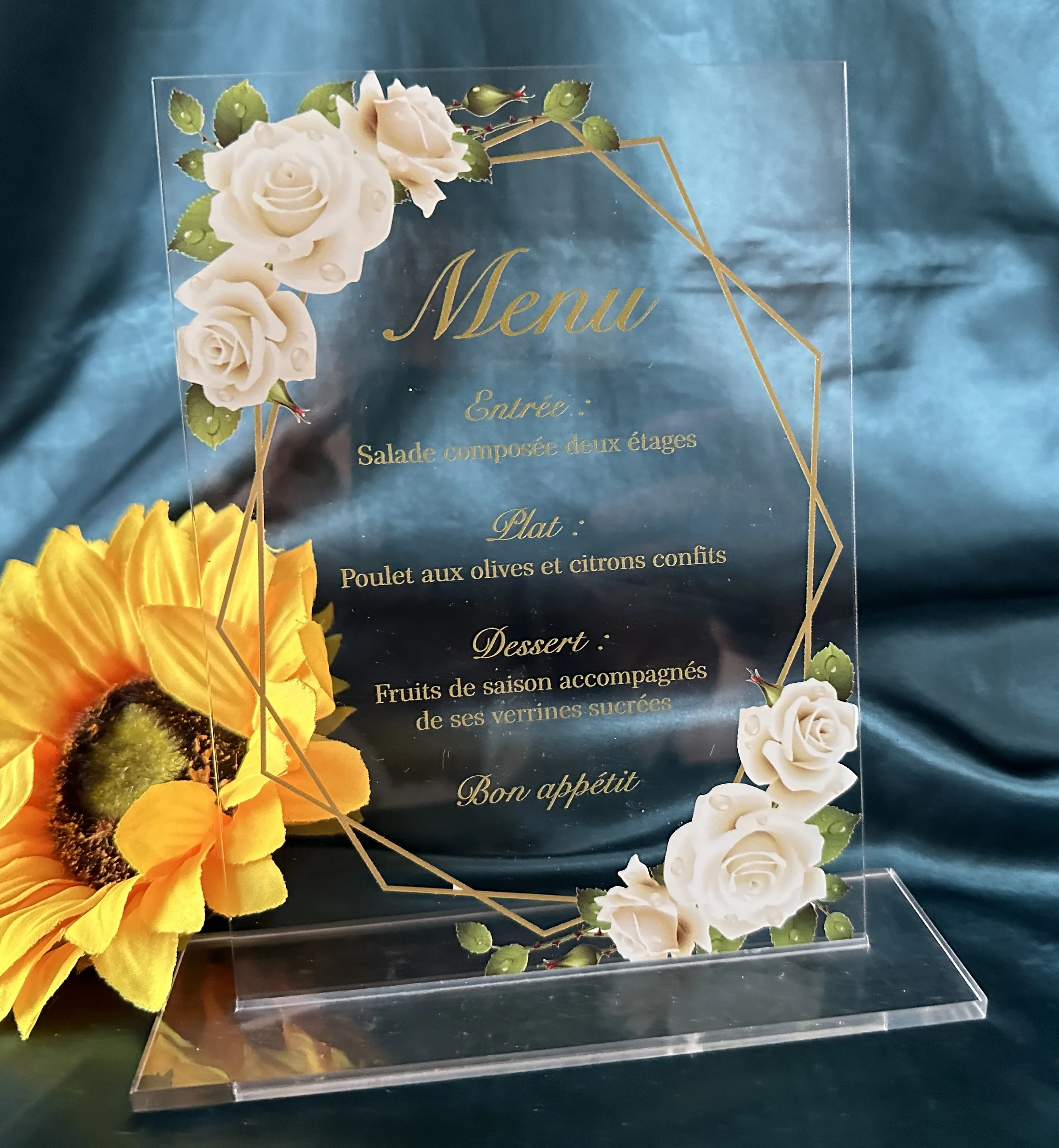 Menu di nozze in acrilico, Menu da tavolo rialzato trasparente, Menu di cena per feste in acrilico dorato stampato, invito a nozze in acrilico personalizzato da 10 pezzi